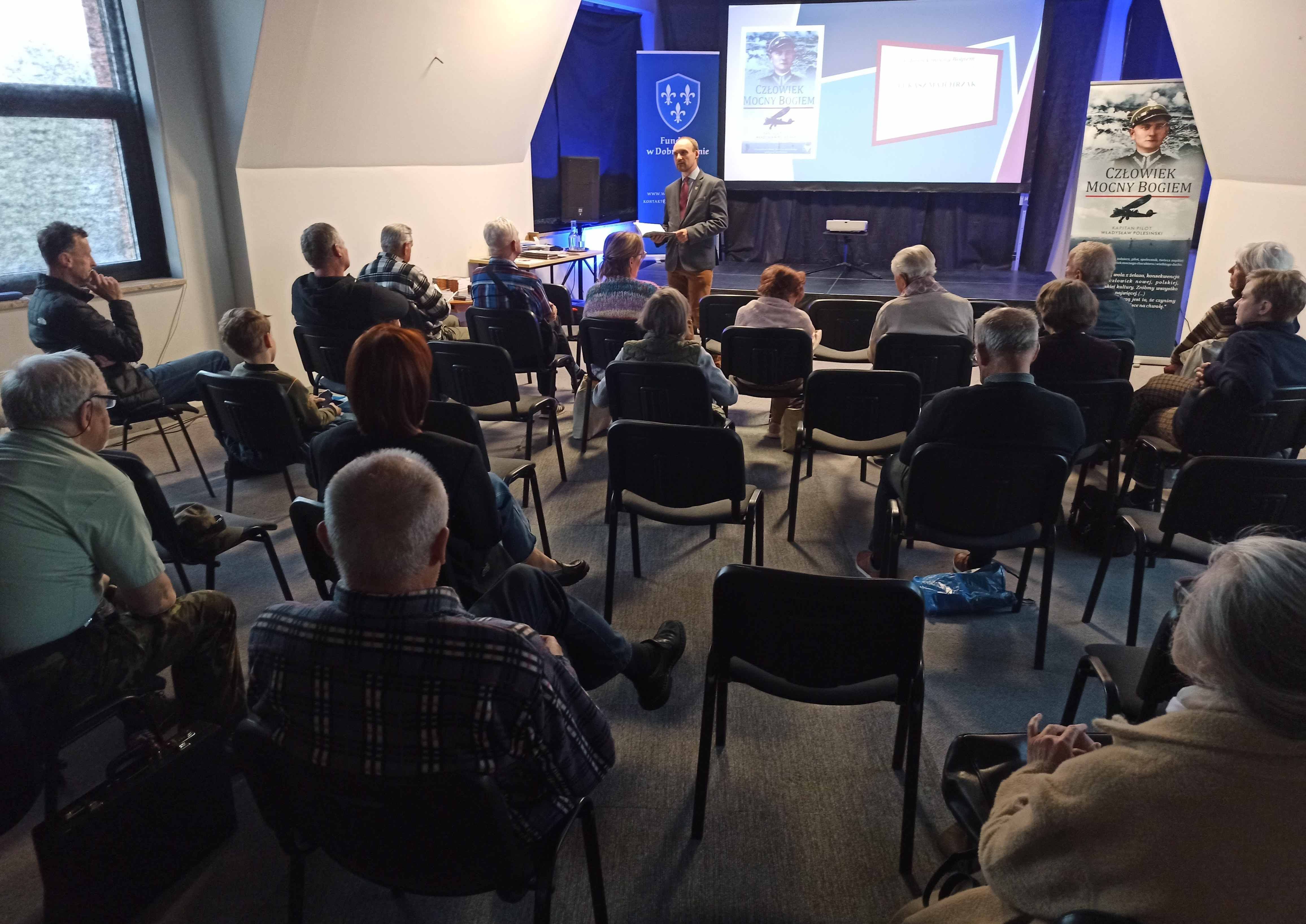 O życiu kpt. Polesińskiego, jego zasadach oraz idei Rycerskiego Zakonu Krzyża i Miecza, który założył, opowiadał Łukasz Majchrzak, prezes Instytutu Hetmana Żółkiewskiego i inicjator II poszerzonego wydania książki „Człowiek mocny Bogiem”.
